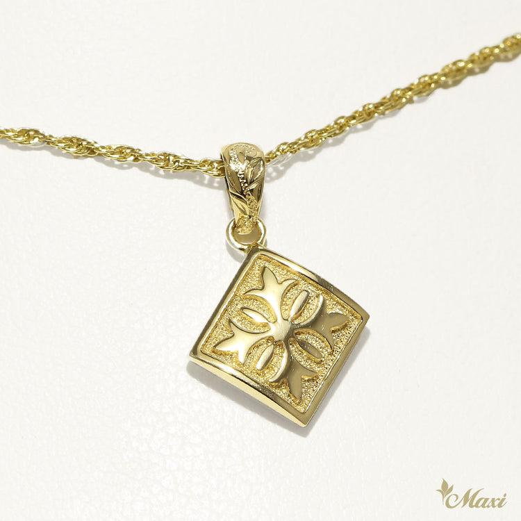 Maile Leaf Hawaiian Quilt Pendant [14K Gold]